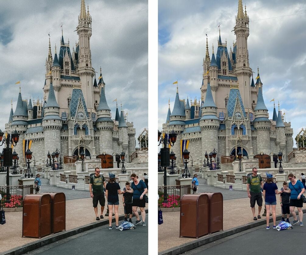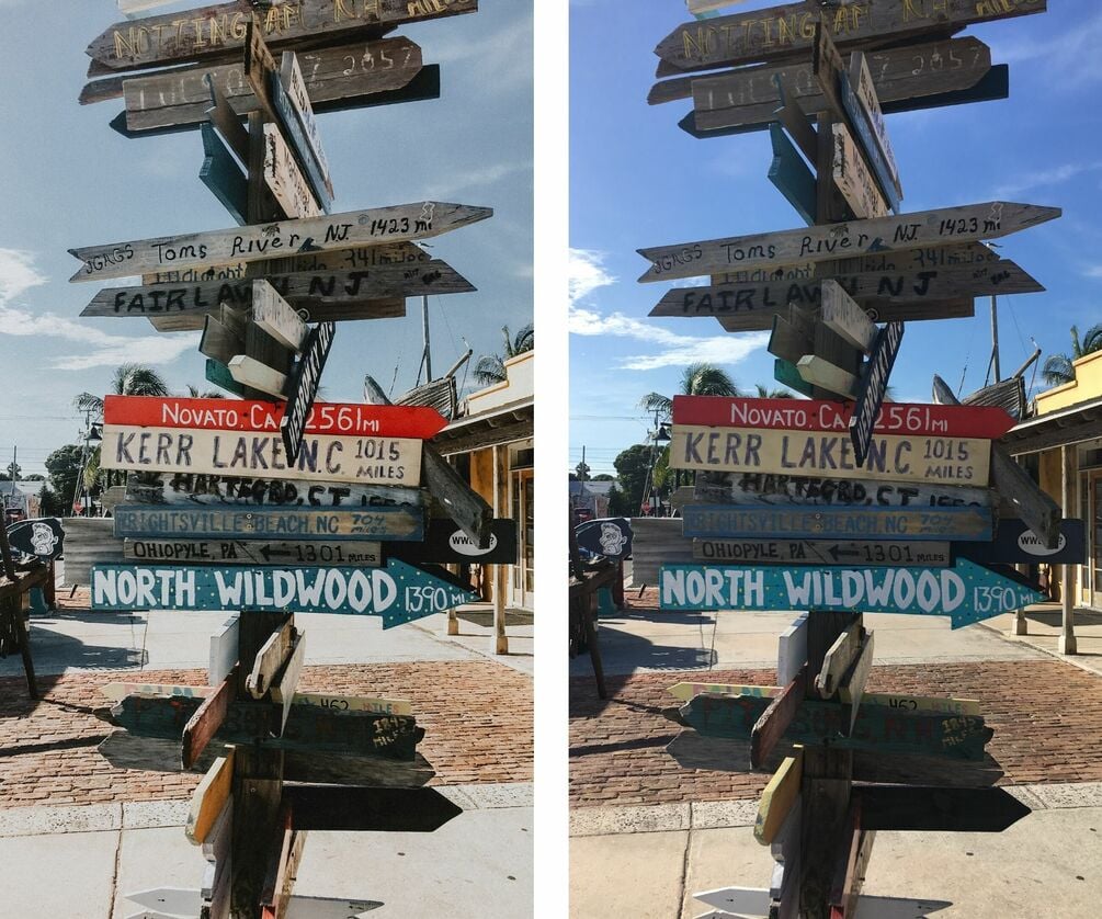 If the images seem too warm, cool them down with the temperature slider. If the contrast is too strong, play with your highlights/shadows. I also recommend using the orange and yellow HSL sliders to adjust skin tones, and the blue slider to adjust the sky.